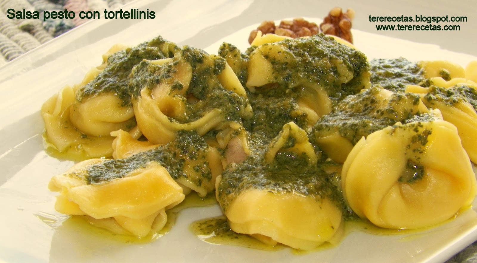 Aquí estoy acompñando la salsa con unos tortellinis rellenos de queso, de marca comercial reconocida.