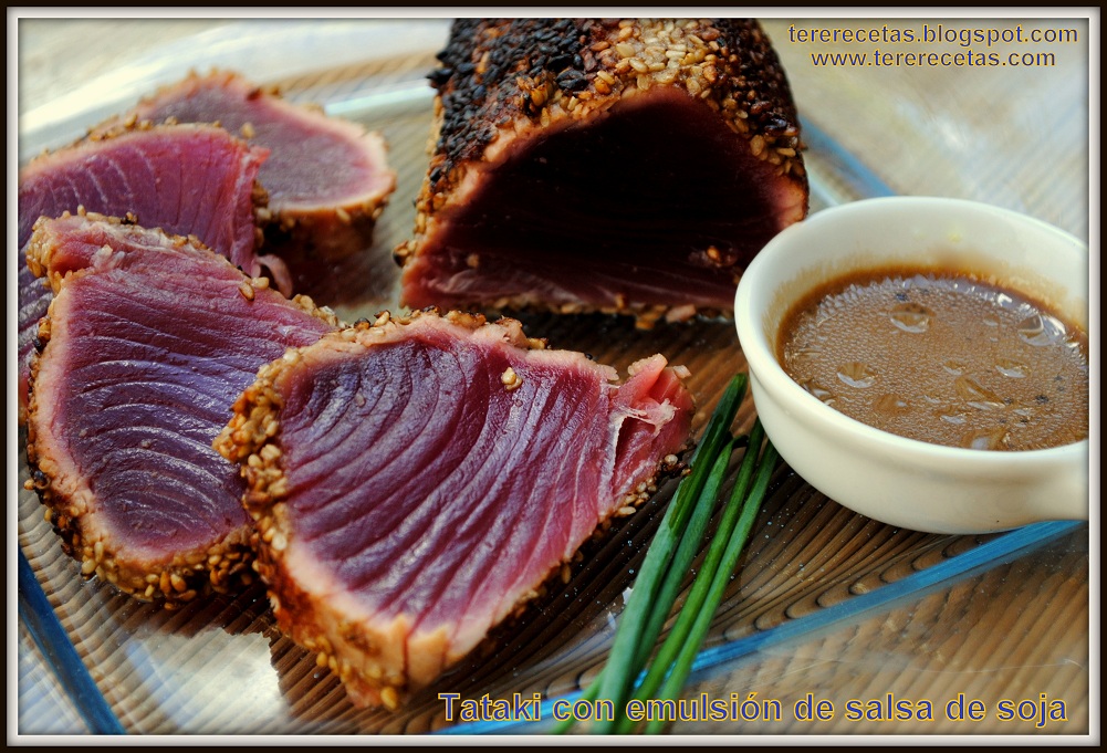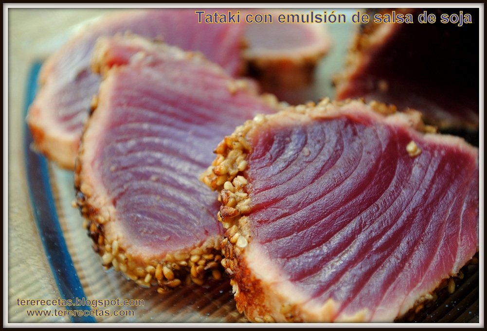 Hola a todo@s… Aquí te traigo un delicioso Tataki de atún con emulsión de salsa de soja, que es para quitar el aliento.