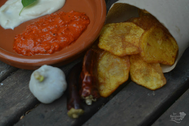 Las puedes acompañar con la salsa que prefieras, yo hice un alioli tradicional con orégano y una salsa de guindillas.