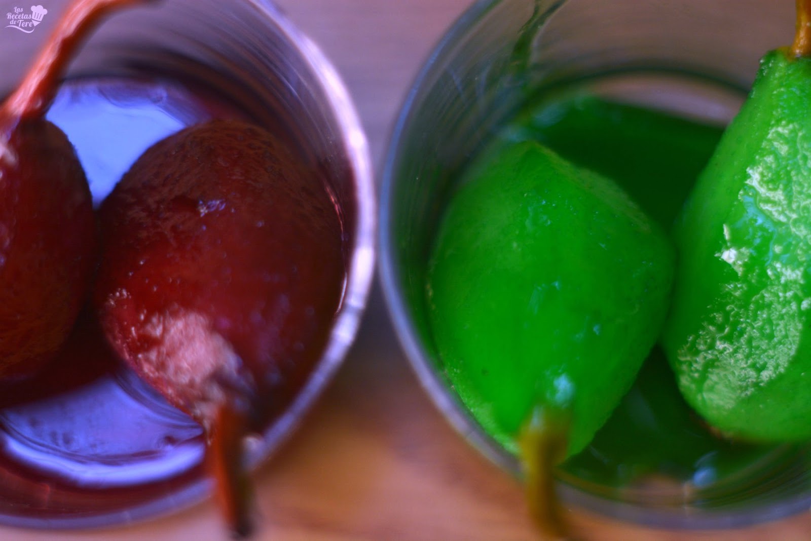Hola a todos… Ayer tuve una comida en casa y por fin me decidí por un postre fresco y ligero, así preparé estas peras bicolores, unas con licor de menta y las otras con vino tinto, el resultado ha sido espectacular, no solo porque quedaron muy vistosas sino por su sabor inmejorable!! Son muy fáciles de hacer, así que te animo a prepararlas, ya que estamos en plena temporada de peras y están a muy buen precio.