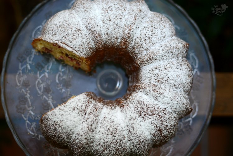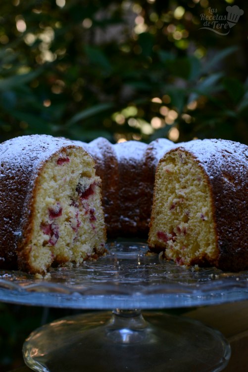 En un bol añades los arándanos. y le agregas una cucharada de azúcar glasé y otra de harina de trigo, unes todo bien, esto se hace para que cuando se hornee, las frutas no se vayan todas al fondo y queden repartidas por todo el bizcocho. Reserva.