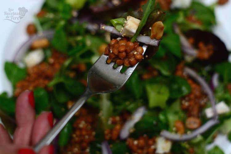 Remueve todo, prueba y debe quedar aliñada con la mezcla que le has echado a las lentejas, si no, rectifica la sal, la pimienta y quizás le agregues un poco más de aceite de oliva.