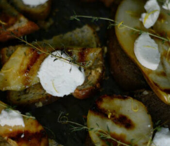 Deliciosas tostadas con peras a la parrilla y queso de cabra