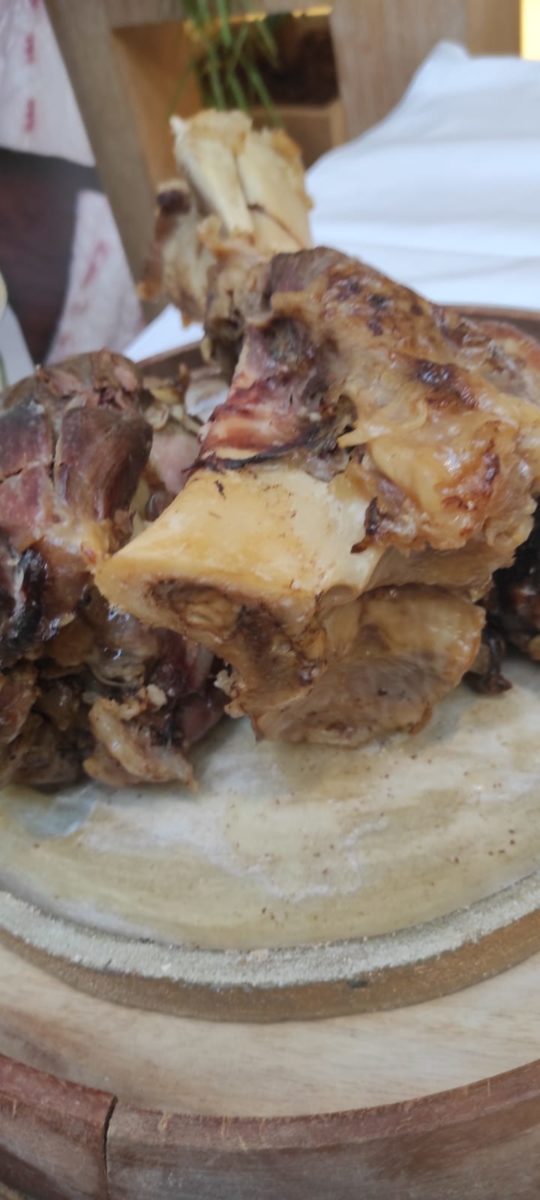 El menú propuesto para esta ocasión, estuvo bajo la batuta de la maravillosa chef Ana Isabel Peiró y se trataba de: ensalada de temporada con queso de rulo de cabra de la Garrotxa, uno con algas de del Ebro y otro con trompetas de la muerte para empezar; seguido de corvina REX asada, costra de pistacho y consomé trufado; jarrete de ternera ecológica con puré de patatas y túber melanosporum».