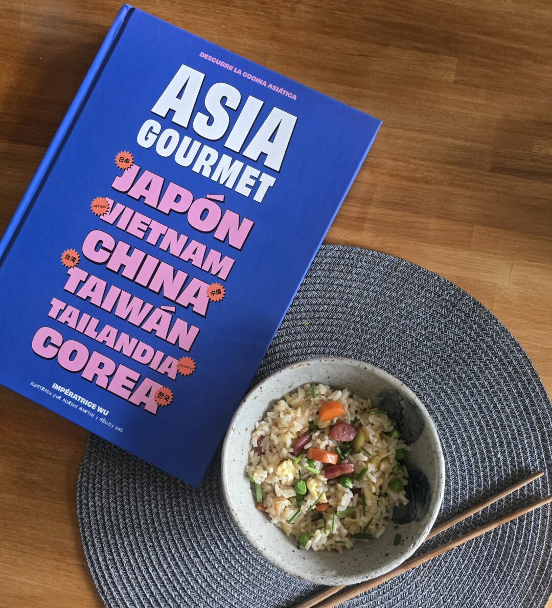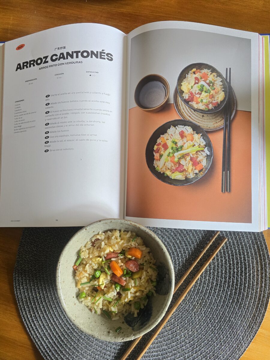 Hola a tod@s, tengo el placer de hablar de este libro Asia Gourmet, Japón, Vietnam, China, Taiwán, Tailandia, Corea tan bonito, tan interesante y tan maravilloso, las ilustraciones son preciosas, en resumen, mi biblioteca gastronómica y yo, somos más felices con este libro en casa. Yo ya lo estrené con una receta de arroz cantonés, que quedó de rechupete, la receta me resultó sencilla y aquí en casa, fue un éxito rotundo.