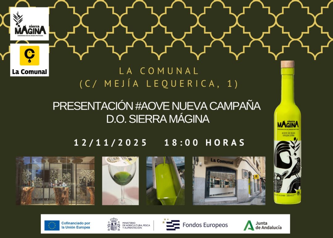 El próximo 12 de noviembre de 2025 a las 18:00 horas, La Comunal (Calle Mejía Lequerica, Madrid) acogerá el evento de presentación de la nueva campaña de la Denominación de Origen Sierra Mágina, uno de los territorios olivareros más emblemáticos de Andalucía.